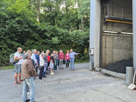 Betriebsleiter Erwin Schäfer erläuterte der Besuchergruppe die Rahmenbedingungen, die Funktionsweise und die Leistungsdaten des Klärwerks und der Klärschlammverwertung. Eine Besichtigung des Betriebsgeländes mit den verschiedenen Anlagen wie mechanische, biologische und adsorptive Reinigung und die Schlammbehandlung bzw. Schlammverwertung schloss sich an den Vortrag an. In technischer Hinsicht ist das Abwasserscreening auf Coronaviren und die adsorptive Reinigungsstufe zu erwähnen. Mit der adsorptiven Reinigungsstufe sollen insbesondere Arzneimittelrückstände aus dem Abwasser entfernt werden.