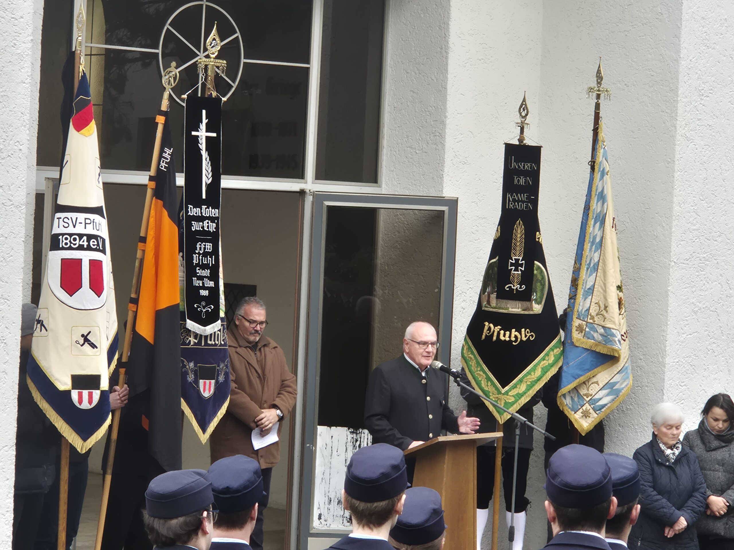Herzlichen Dank an den Vereinsring Pfuhl für die Organisation dieser Gedenkveranstaltung. Der Vereinsring hat hier gemeinsam mit der Evangelischen Kirchengemeinde Pfuhl/Burlafingen, der Feuerwehrkapelle, dem Singverein, der Karl Salzmann -Schule und der Feuerwehr einen würdigen Rahmen für den Volkstrauertag geschaffen.